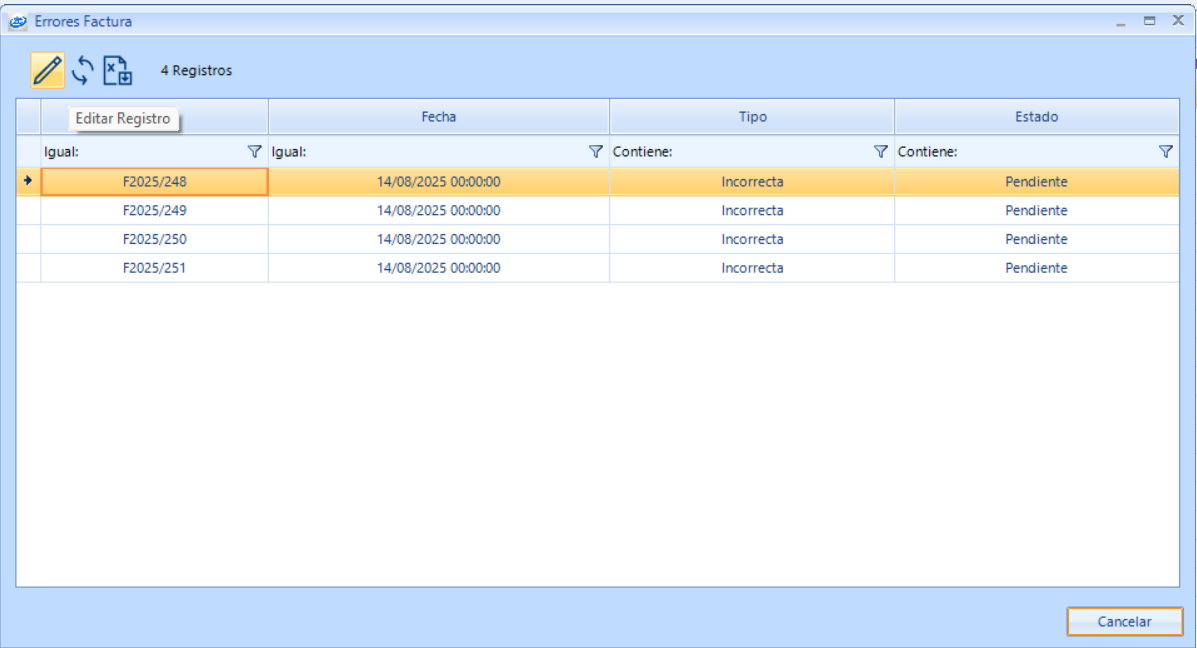 - Listado de Facturas: las facturas pendientes de subsanar errores se marcan en color rojo.