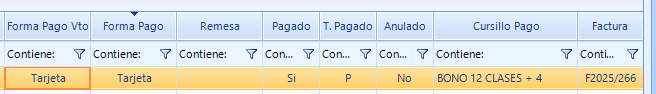 En el listado de vencimientos, al hacer doble clic sobre uno, se accede a la ficha del vencimiento seleccionado, permitiendo consultar y gestionar pagos relacionados con la factura de forma inmediata.