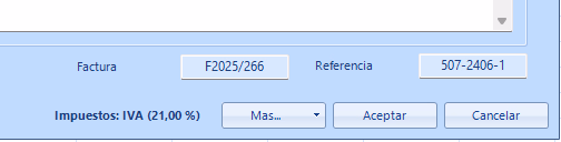 Por defecto se considerará como tipo impositivo “IVA” y como porcentaje aplicado el 21%.
