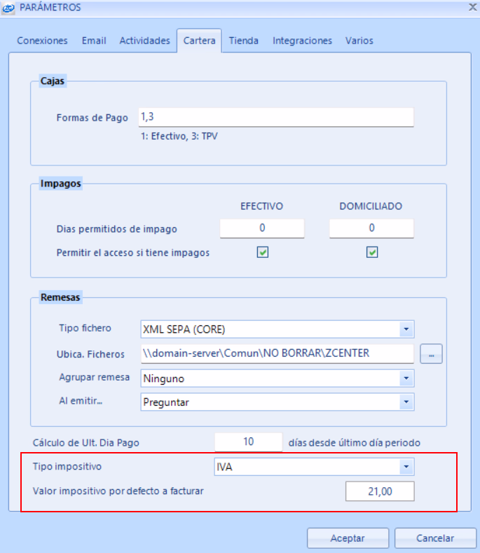 PARÁMETROS – CONFIGURACIÓN TIPO IMPOSITIVO