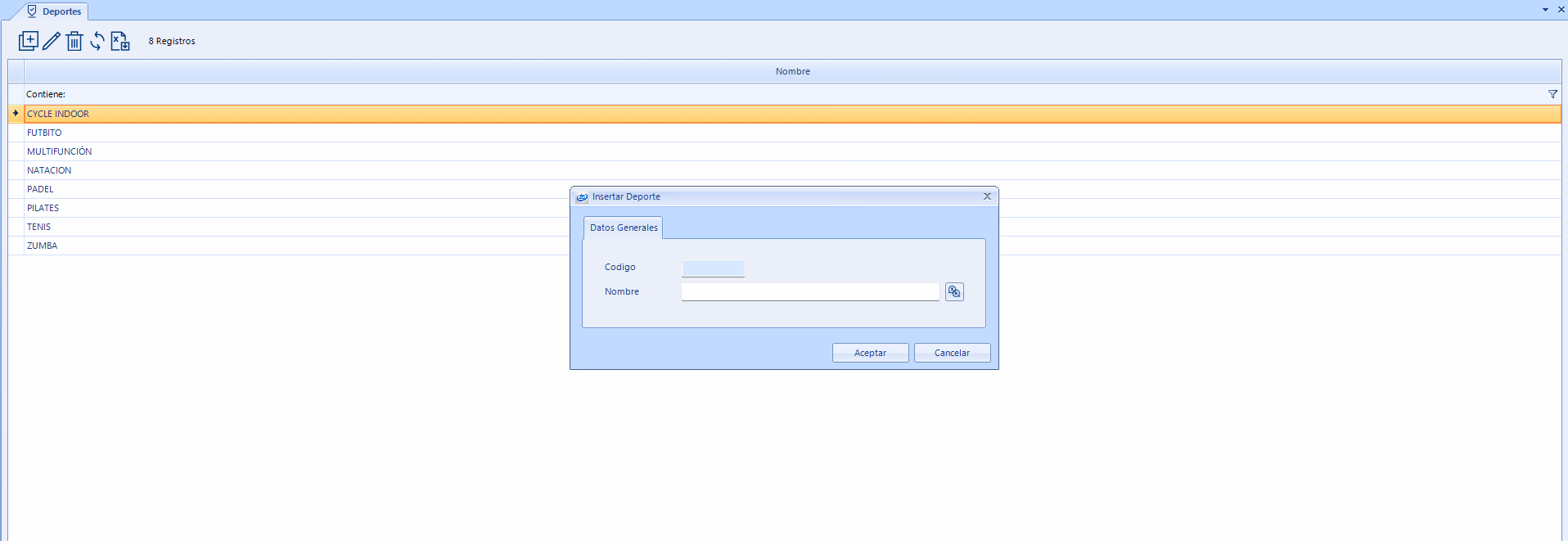 - Deporte: Utiliza el botón de búsqueda para seleccionar un deporte previamente creado en la parametrización del Paso 2.