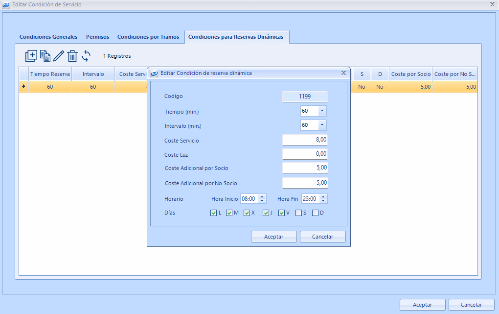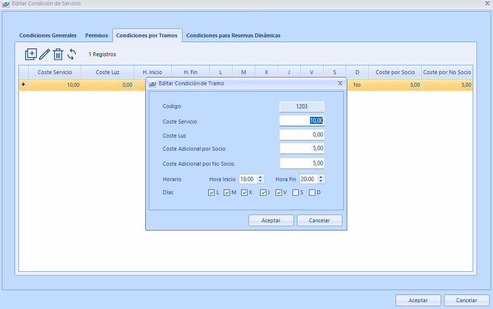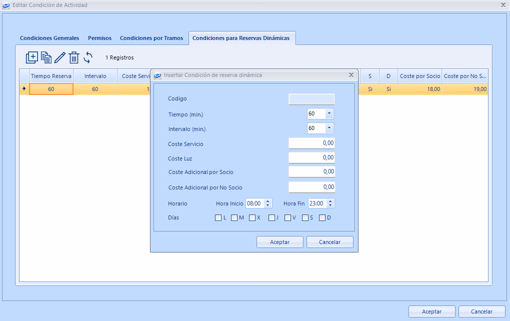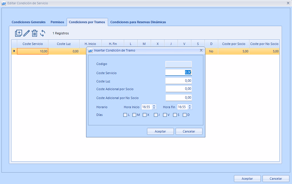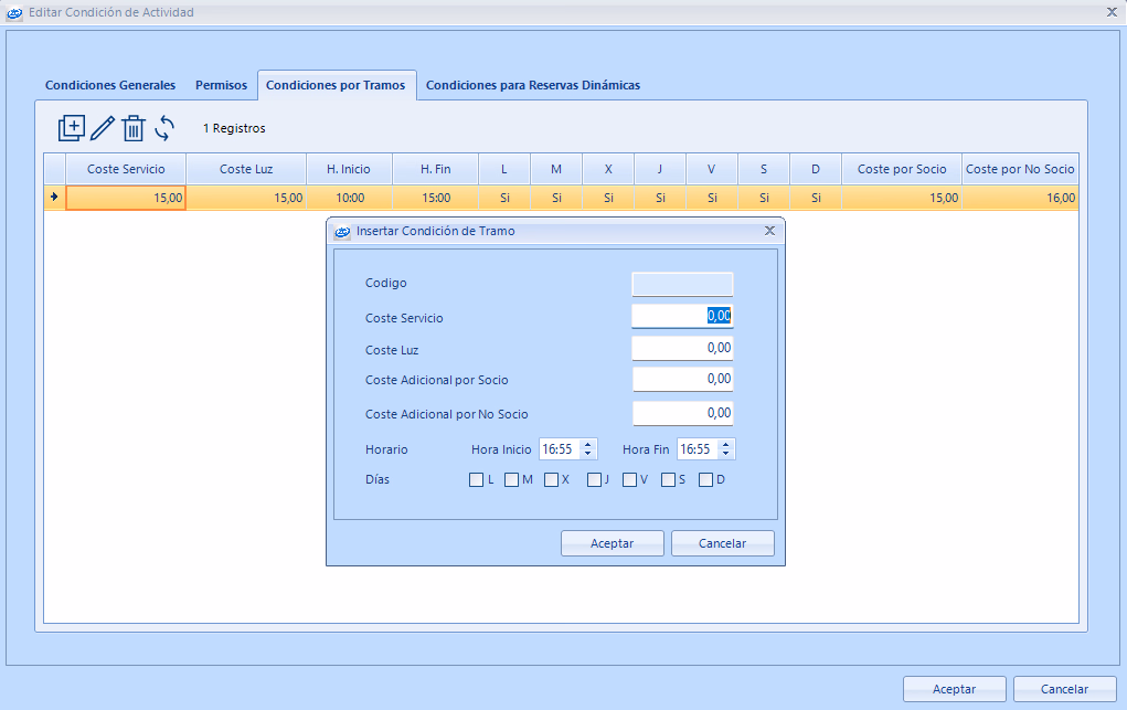 - Coste Adicional por no Socio: Importe del coste Por No Socio Invitado en el tramo creado.