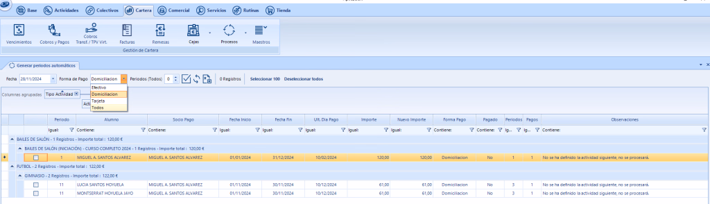 Antes de generar los periodos, es importante revisar la columna ‘Observaciones’, donde se mostrará información sobre cualquier vencimiento que no pueda generarse correctamente para el siguiente periodo.